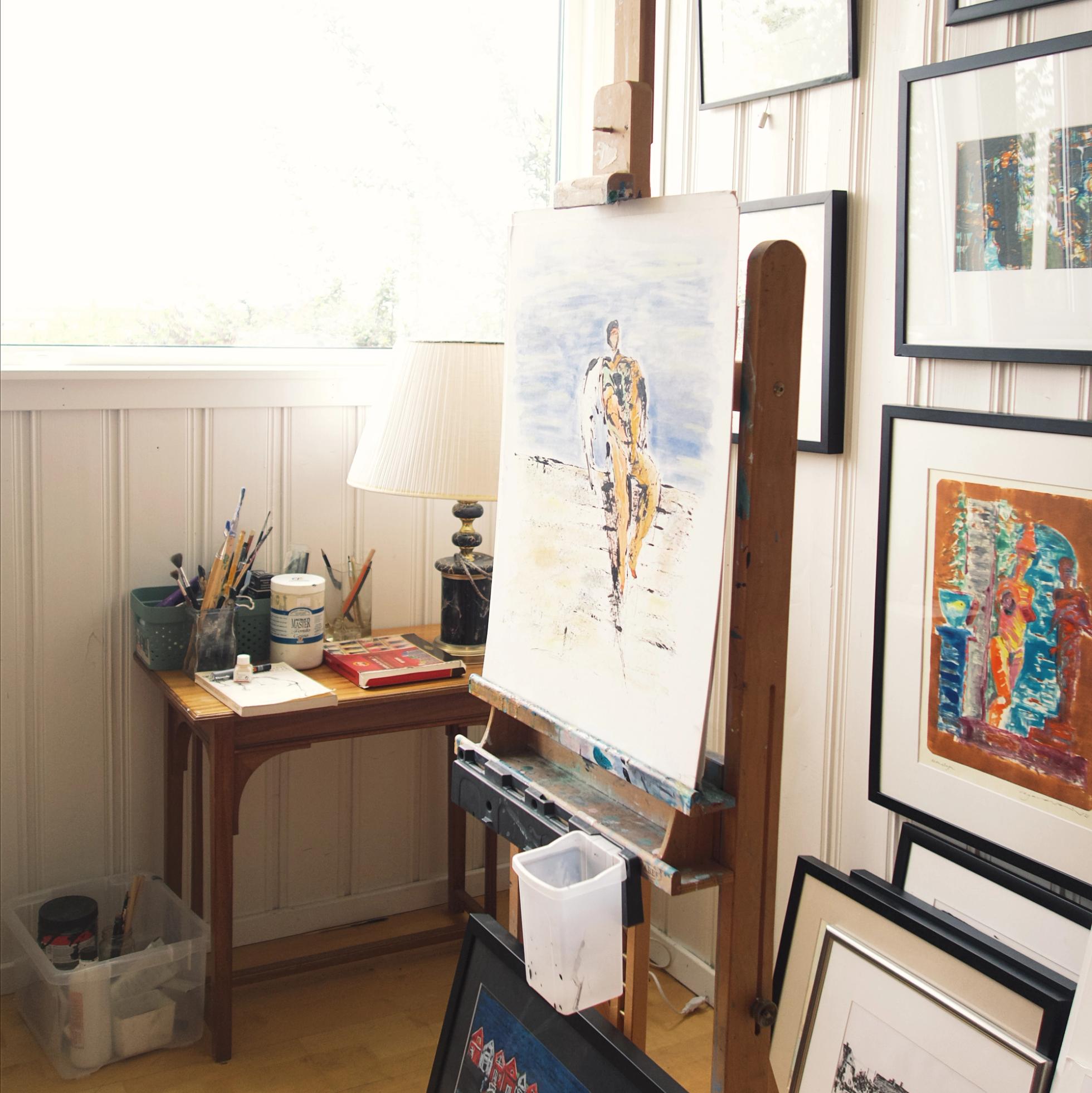 Jeg begynte med tegning i sort/hvitt og lærte meg etter hvert flere teknikker innen grafikk, akrylmaling, tusj, akvarell, pastell og monotypi. Hver gang med inspirerende lærere. Det ga meg ny boost og inspirasjon hver gang.